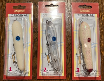 ブルーアイ(ボーン):甲高いワンノックサウンドと高い浮力で広範囲をテンポよく探るのに適しています。